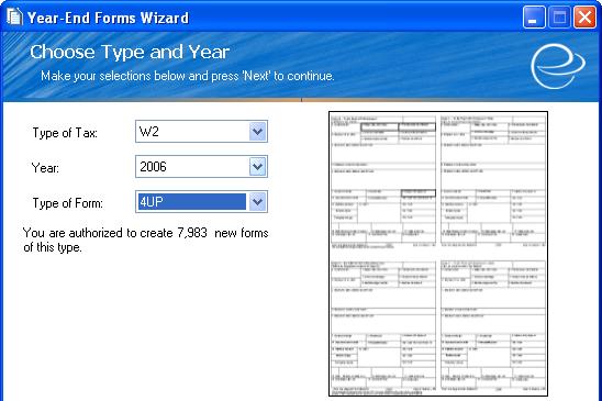If you are creating a new formset, you will be asked to choose the type of tax, year, and type of form. If you are E-Filing or working with a previous formset, you will not be given an option to choose a type of form, since the formset will have already been created with a specific type.