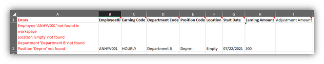 - Initially you will be returned text will explain that errors were found on the import. Then the error report will automatically download for review.