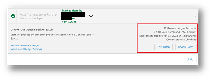 Improved Feature – General Ledger: Add GL Status/Timestamp