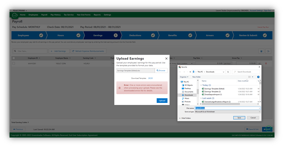 Benefits Import: Greenshadesonline.com > Payroll > Run Payroll > Benefits Step > Add Benefits > Upload > Import