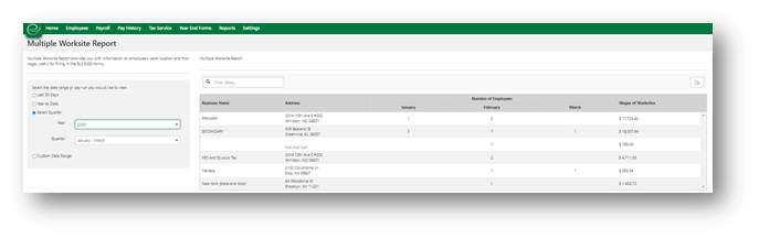 A new report to capture the required data elements for the Multiple Worksite Reports has been added to the reporting section. The report will feature the following: